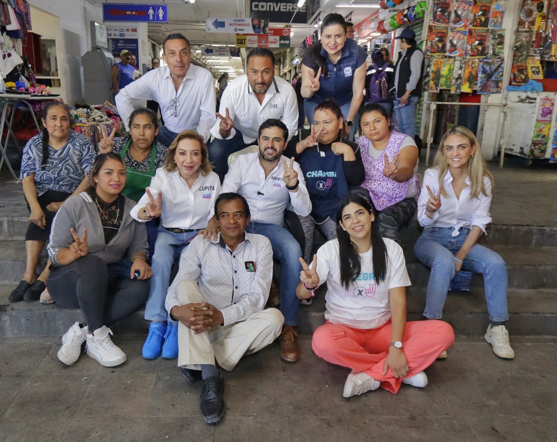 Durante el recorrido por el Mercado de La Cruz que cuenta con 44 años de existencia y alberga más de 600 locales y 390 locatarios, la fórmula de la Coalición “Fuerza y Corazón por México” estuvo acompañada por la dirigente estatal del PAN, Leonor Mejía, la candidata a Diputada Federal, Tania Palacios Kuri; así como representantes y liderazgos de este tradicional centro de abasto para las familias queretanas.