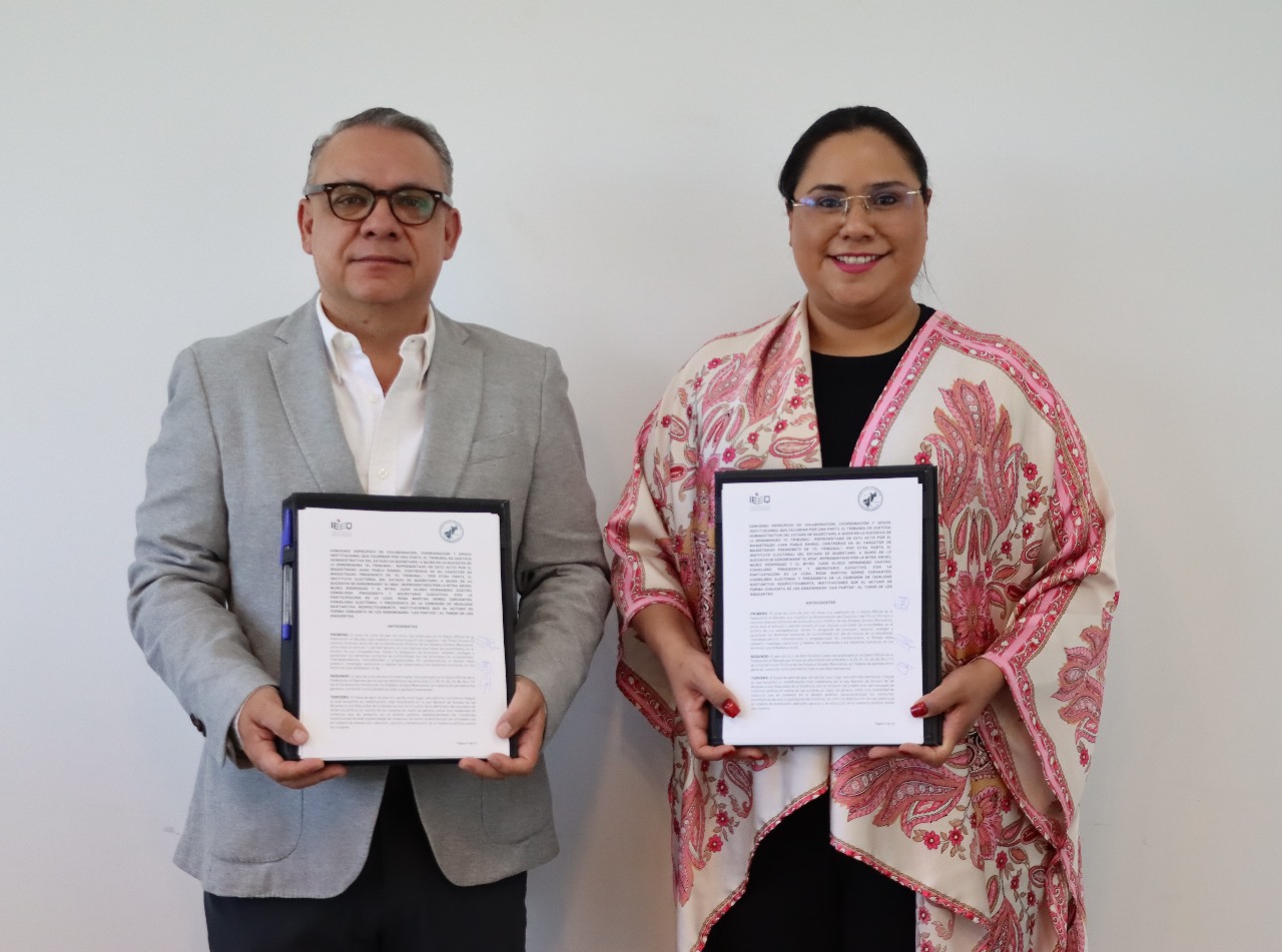 El Instituto Electoral del Estado de Querétaro (IEEQ) firmó un convenio de colaboración, coordinación y apoyo con el Tribunal de Justicia Administrativa del Estado de Querétaro (TJAEQ), a fin de intercambiar información sobre aspirantes a cargos de elección popular que cuenten una sentencia firme por violencia política contra las mujeres en razón de género.