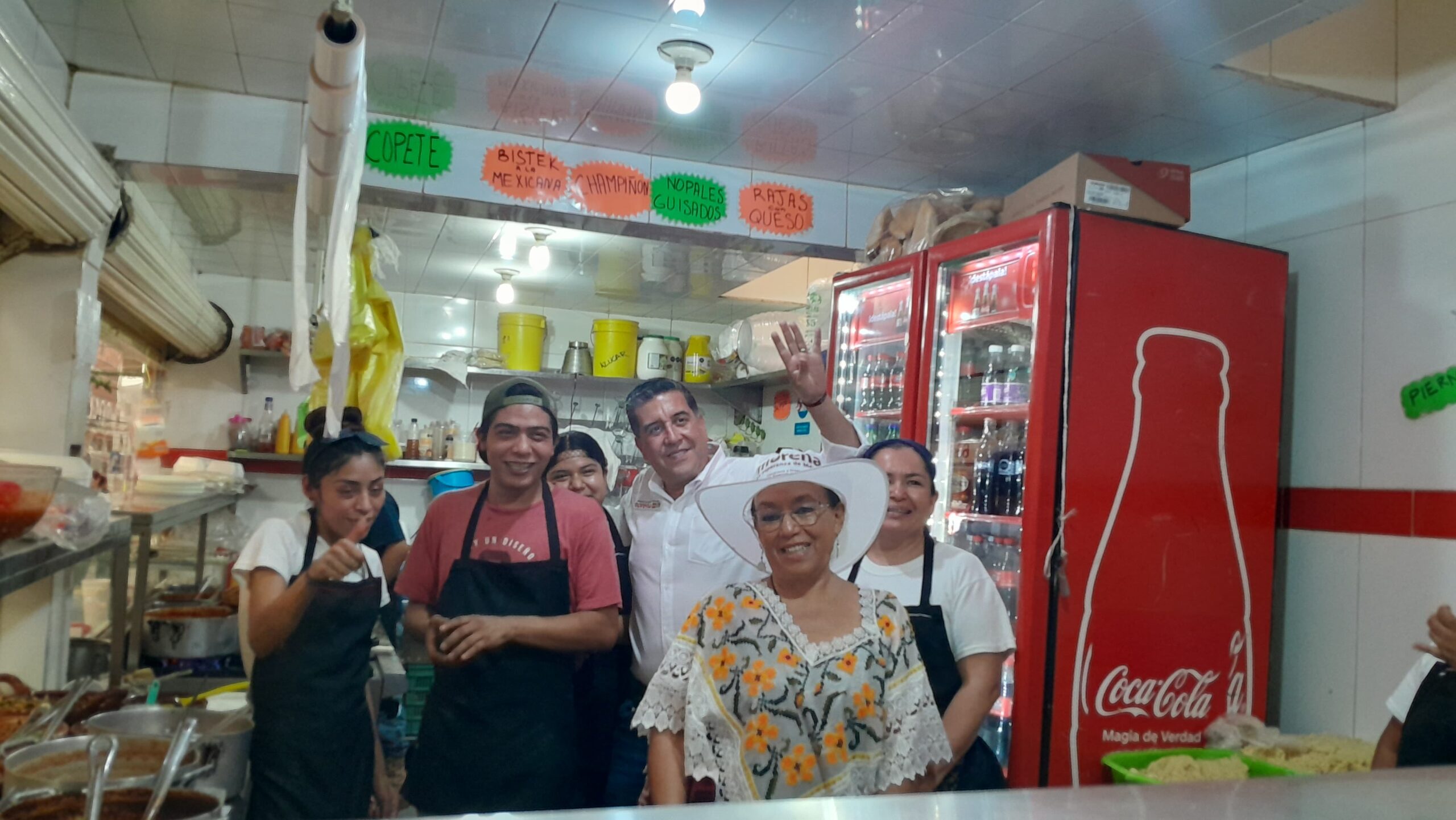 El candidato común de Morena, PVEM y PT a la alcaldía de Querétaro ofreció reunirse y escuchar a comerciantes y liderazgos para hacer de los mercados públicos centros de abasto eficientes y competitivos.
