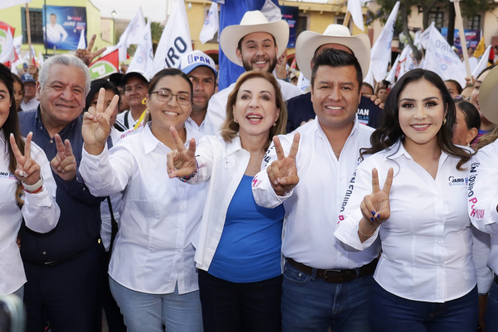 Ante un buen número de simpatizantes, congregados en la plaza principal,  Lupita Murguía acudió como invitada al arranque de campaña de Jairo Morales, como candidato de la coalición Fuerza y Corazón por México, a la Presidencia Municipal de Huimilpan.
