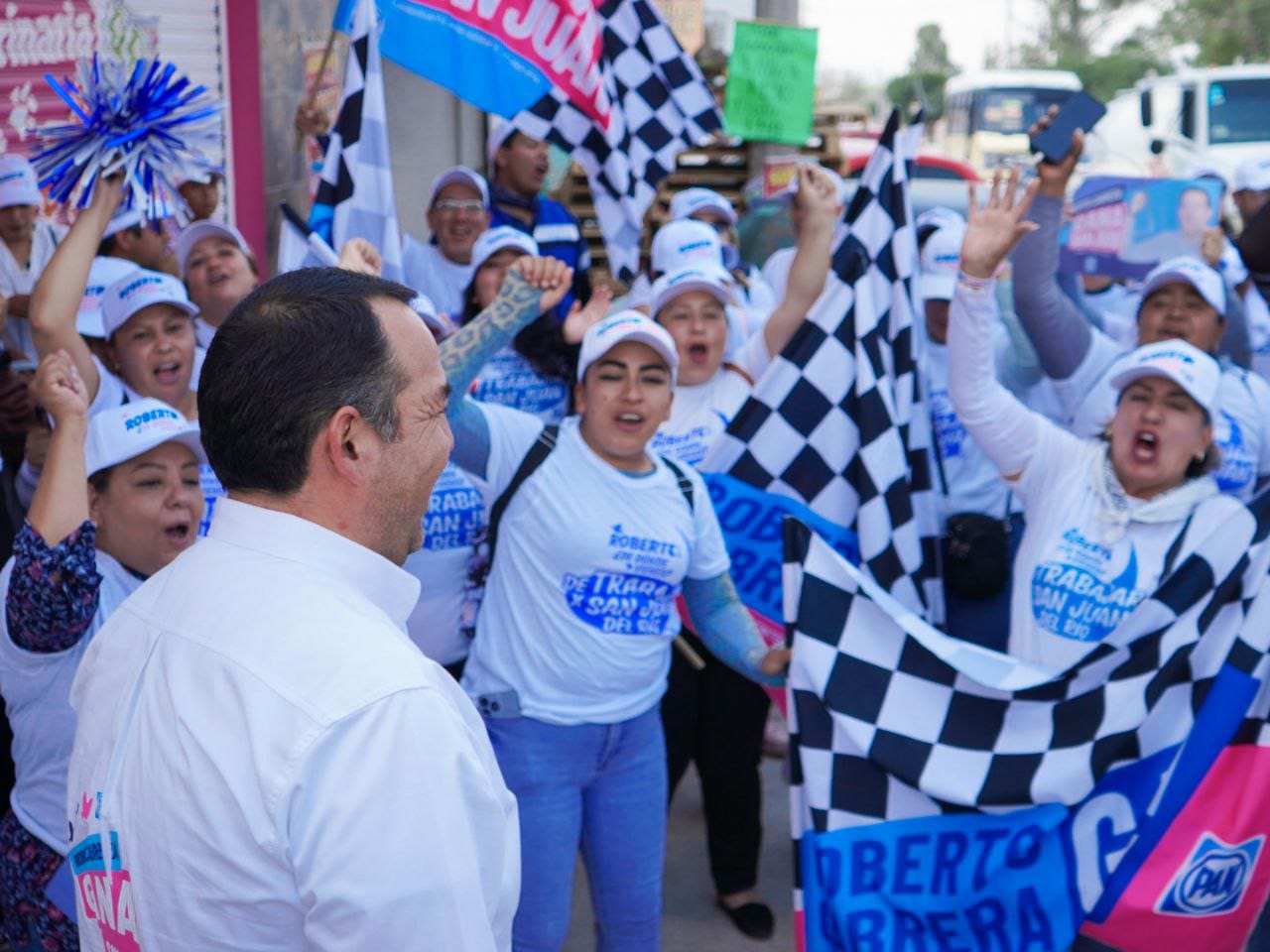 En un ambiente festivo, de ánimo, alegría y unidad, el candidato del Partido Acción Nacional (PAN) a la Presidencia Municipal de San Juan del Río, Roberto Cabrera Valencia, participó en la activación de brigadas en el crucero de avenida de Los Patos y avenida Universidad, donde se ondearon a lo alto las banderas con el mensaje «Con Roberto Cabrera, San Juan Gana».