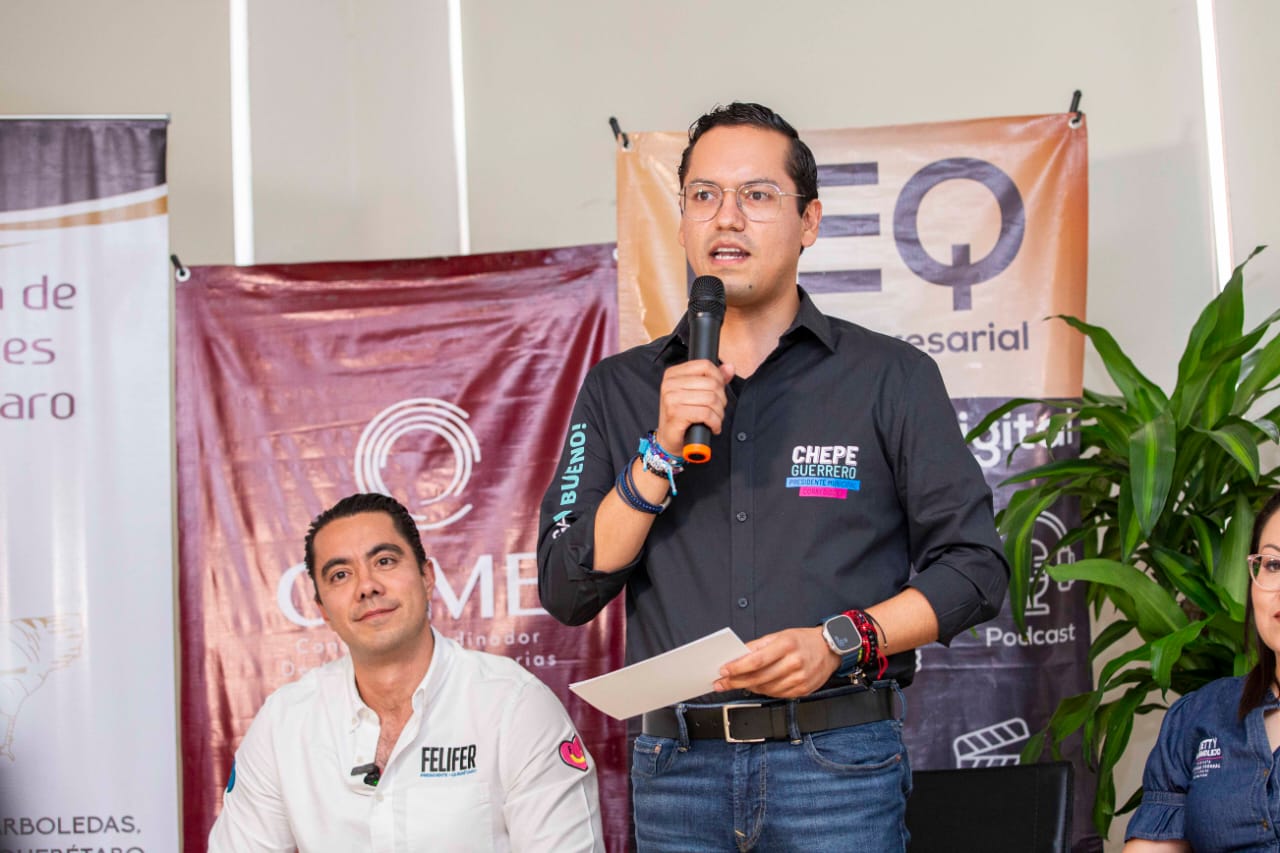 Chepe Guerrero, candidato a presidente municipal de Corregidora por el Partido Acción Nacional (PAN), se reunió con integrantes de la Confederación Patronal de la República Mexicana (COPARMEX) en Querétaro, donde aseguró que su administración será uno que escuche a la ciudadanía y trabaje con ella, pues de esa forma dijo, se podrá construir el mejor municipio de la historia.