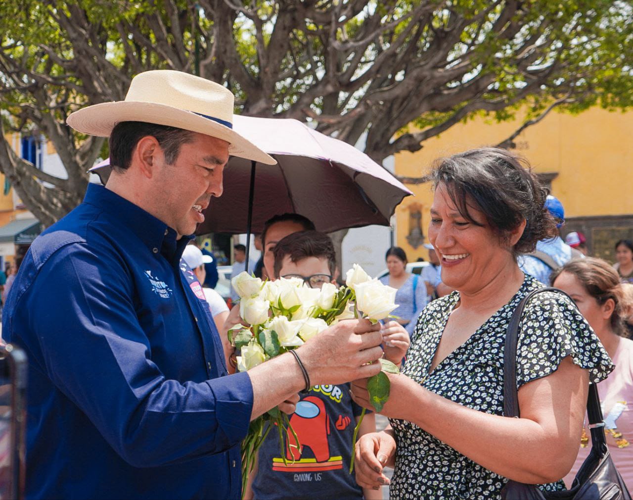 En San Juan del Río nos importan las mujeres, las escuchamos y trabajamos por ellas, ya que son el pilar de sus familias, y las familias, el pilar de la demarcación, afirmó el candidato del Partido Acción Nacional (PAN) a la Presidencia Municipal de San Juan del Río, Roberto Cabrera Valencia, durante un recorrido en el Jardín Independencia, donde felicitó y entregó flores a las mamás sanjuanenses con motivo del Día de las Madres.