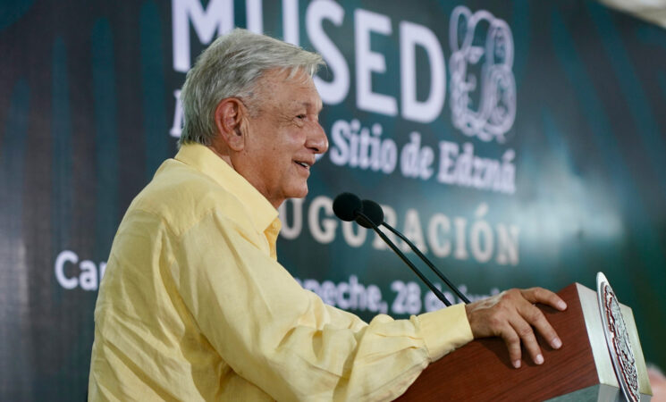 El presidente Andrés Manuel López Obrador inauguró este viernes el Museo de Sitio de Edzná, en Campeche, que expondrá la grandeza de la cultura maya como parte del proyecto Tren Maya en el sureste del país.