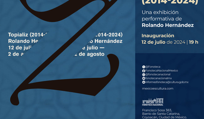 Del trabajo del artista multimedial Rolando Hernández Guzmán, curador de “Topializ (2014-2024)”, destaca su especialización en investigación de archivos, curaduría, escritura, composición y producción artística. Es codirector del Festival Umbral y director del Centro de creación, archivo y difusión de documentos de arte sonoro en México.