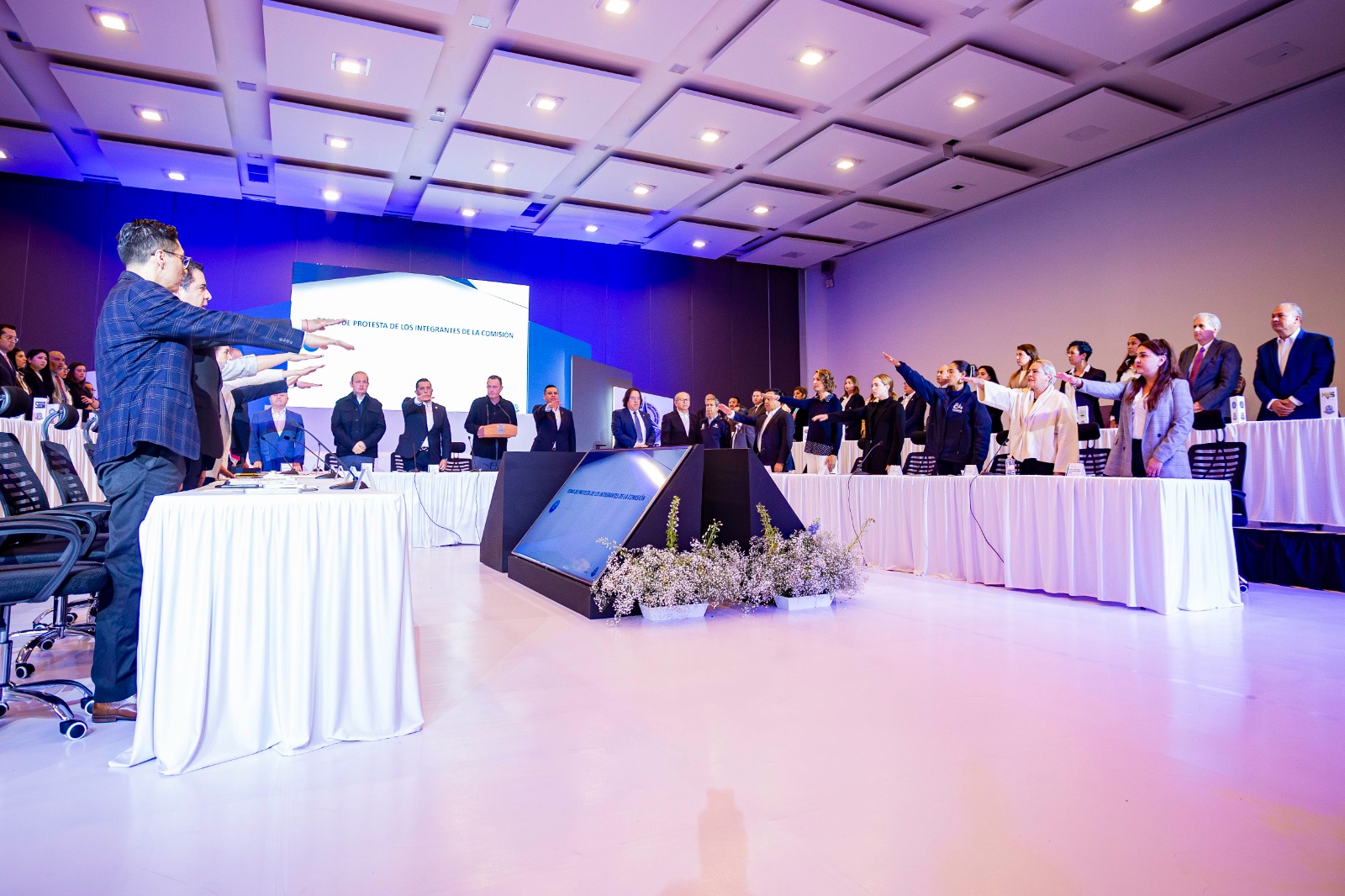 Durante la celebración de esta sesión, realizada por mandato de la legislación nacional y la correspondiente al Estado, el Gobernador tomó protesta a los integrantes de la Comisión Intersecretarial del Sistema Penitenciario de Querétaro que se dieron cita en Querétaro Centro de Congresos, acto que fue atestiguado por representantes de asociaciones civiles en el Estado.