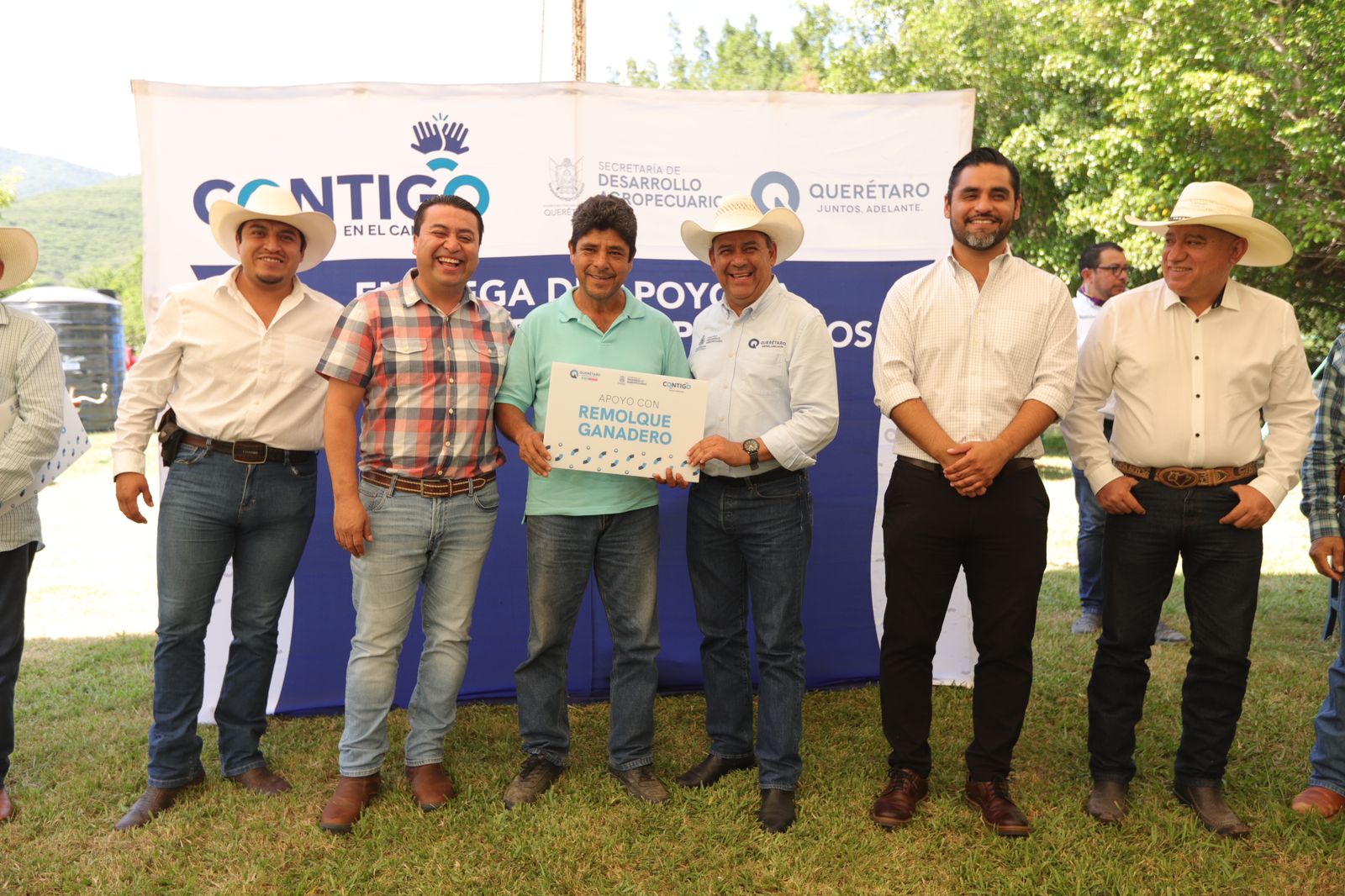 “Arrancamos aquí en Arroyo Seco, pero de aquí, nos vamos a Jalpan, luego nos vamos a Landa y finalizamos en Pinal de Amoles. En los cuatro municipios vamos a hacer entrega de equipo que ojalá que a ustedes les sirva, esa es la intención. O sea, si alguien va a tener alguna picadora, si alguien se va a llevar el alambre, veo por allá varias cisternas, veo obviamente el remolque de cama baja o ganadero, lo que ustedes en un momento dado hayan solicitado, ojalá que les sirva.”, señaló.