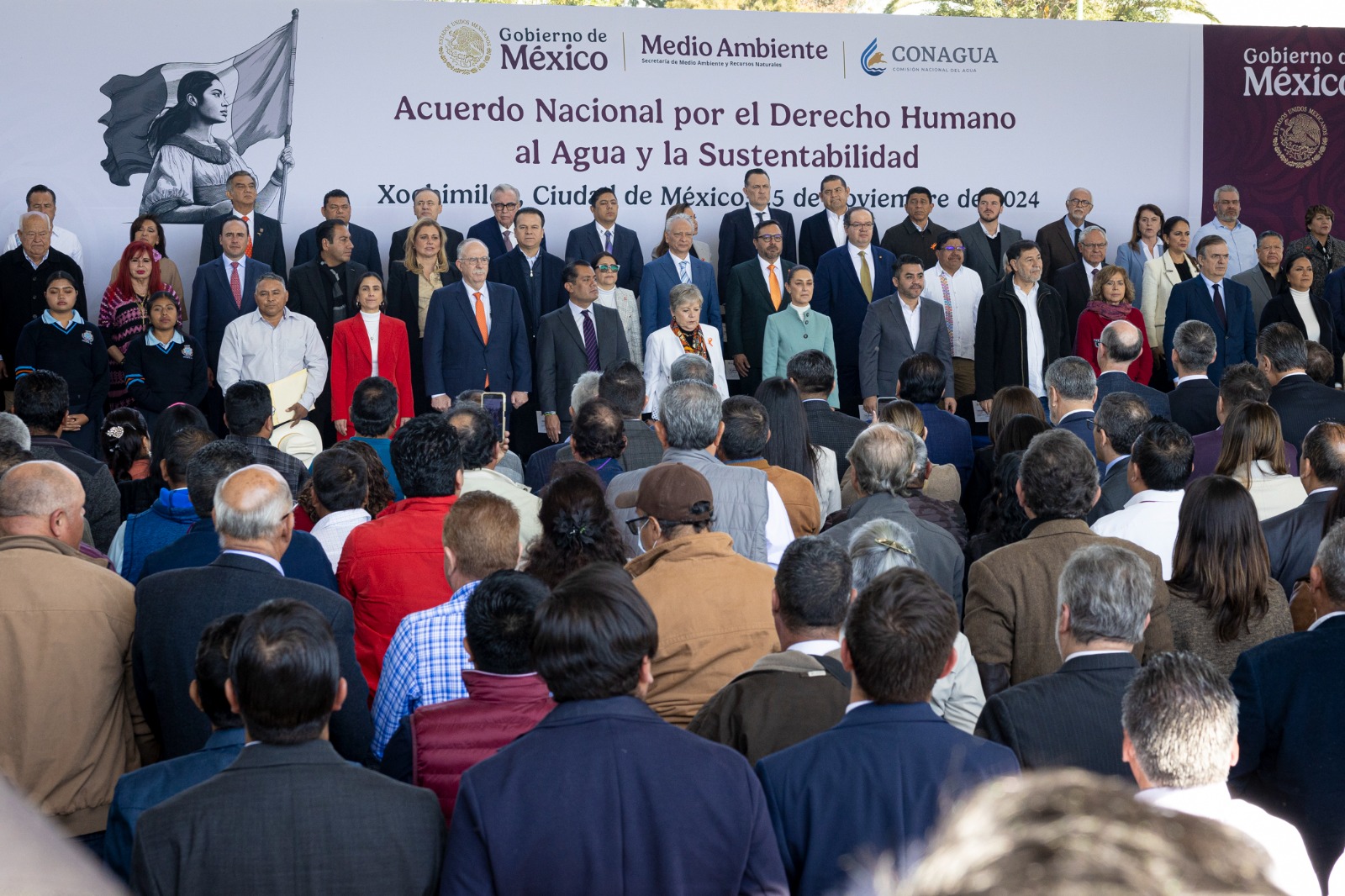 Durante este acto, la presidenta de México, Claudia Sheinbaum Pardo, reconoció la suma de voluntades de las autoridades de las 32 entidades federativas, empresarios y representantes de sectores productivos y académicos, quienes se han unido para que cada mexicano tenga acceso al agua potable de calidad, con suficiencia, y que permita garantizar el abasto de este recurso para la producción de alimentos y el desarrollo del país en el largo plazo.
